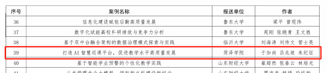 近日,山东省教育厅公布了2024年数字化赋能教育管理信息化建设与应用典型案例评选结果,437ccm必赢国际首页欢迎您报送的《打造AI智慧巡课平台,促进教学水平高质量发展》成功入选。这标志着学校在教育信息化领域取得了重要进展。