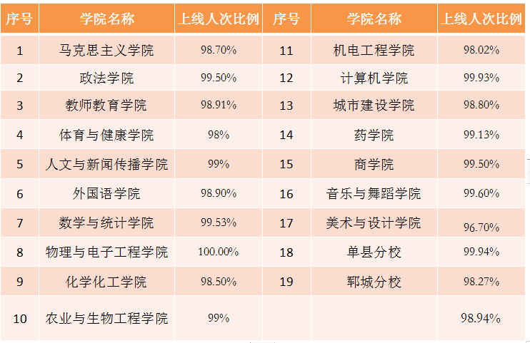 累计上线学习学生人次数占累计应上线学习人次数比例。(表5)