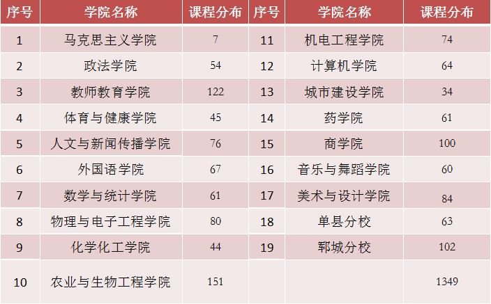 1.各学院线上教学开课门数。(表1)