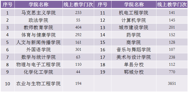 1.各学院实施线上教学教师人数。(表3)
